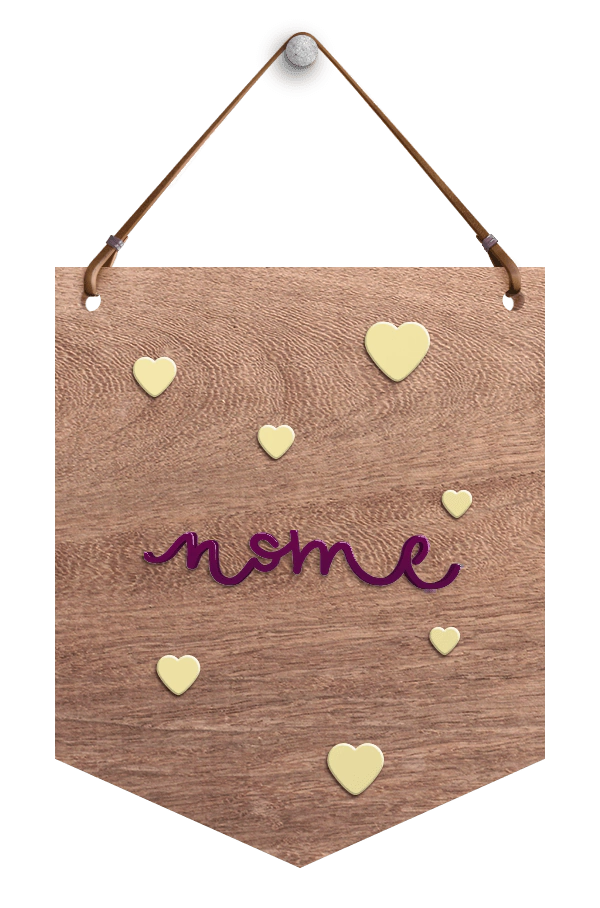 Nome e adorno (se aplicável) em acrílico; nomes compostos serão colocados em duas linhas;